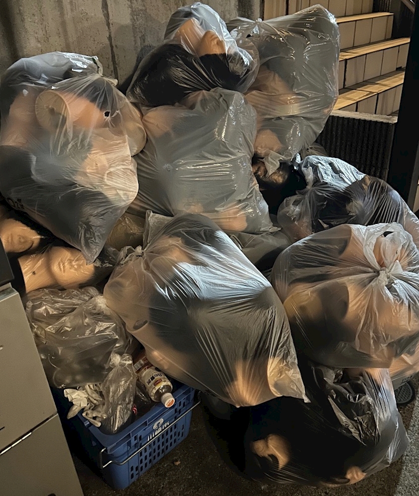 大量のマネキンの首だけがゴミ袋にまとめてあることに気づきました💦
